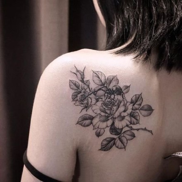 锁骨简约纹身_9张锁骨上的小清新简约黑灰纹身作品图案
