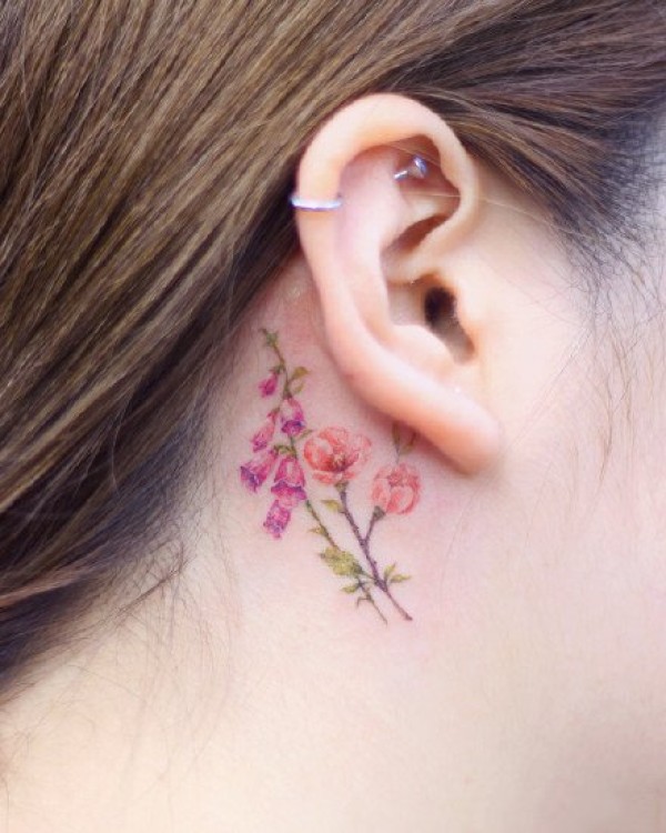耳朵后面小纹身:9张纹在耳朵后面的小清新纹身图案