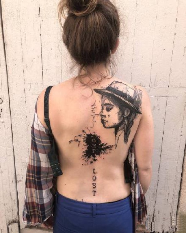 新传统风格的9张男性黑灰大满背纹身图案图片