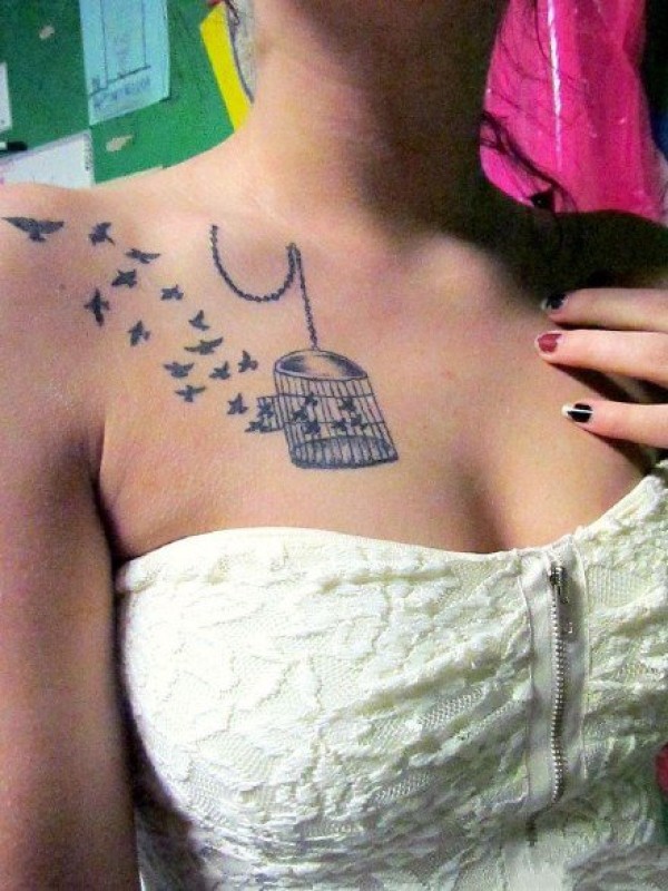 鸟笼纹身--放飞自由象征的飞鸟和鸟笼纹身图案欣赏