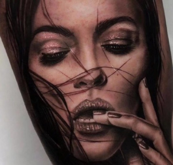 欧美写实风格的一组逼真3d人像写实纹身作品图案