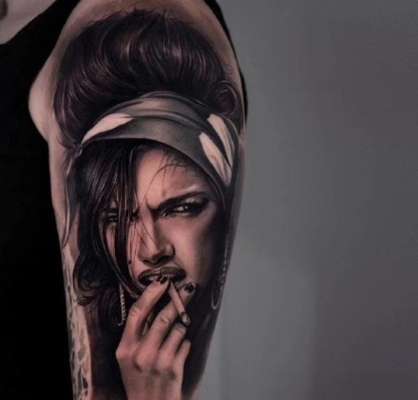 很细腻的欧美人像写实纹身图案9张