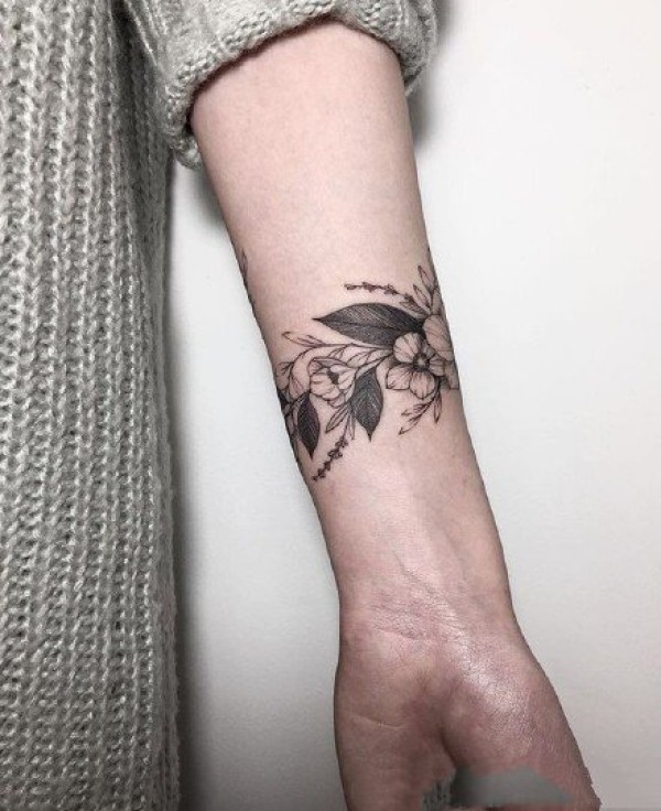 缠绕在小手臂手腕上的花藤纹身图案作品