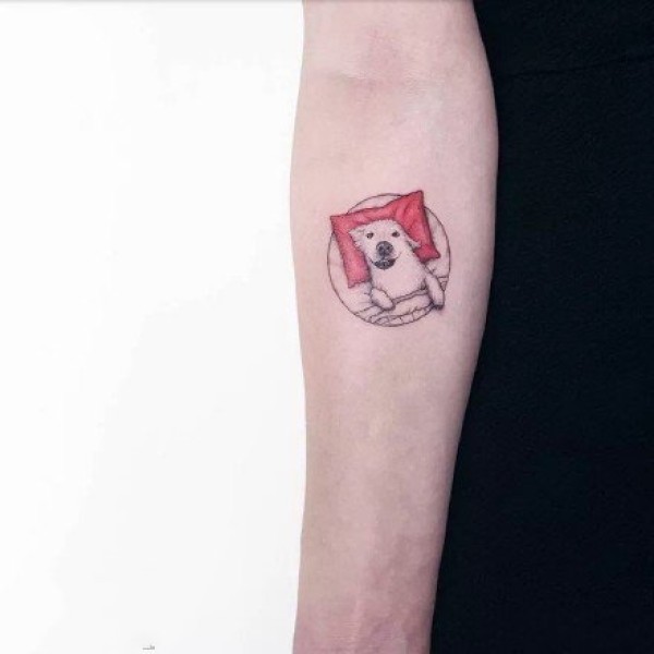 潮流纹身-色彩可爱的小猫小狗手臂纹身图片