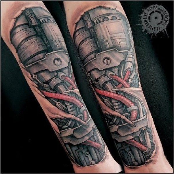 让人感觉无比有力的男性生物机械花臂纹身图案