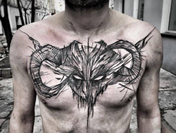 纹身图案胸部男 简洁大方的男生胸部纹身图案