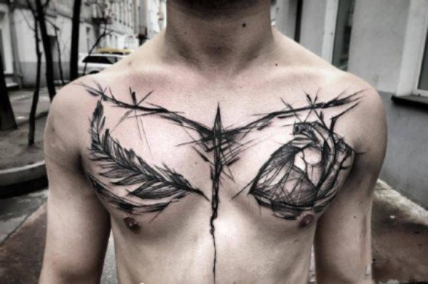 纹身图案胸部男 简洁大方的男生胸部纹身图案