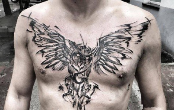 纹身图案胸部男 简洁大方的男生胸部纹身图案