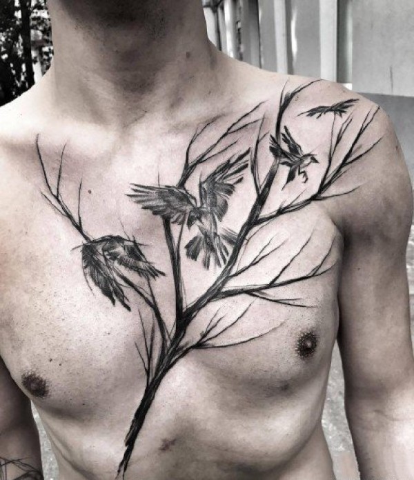 纹身图案胸部男 简洁大方的男生胸部纹身图案