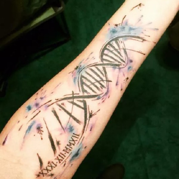 DNA双链纹身--交织在一起的DNA双链符号纹身图案