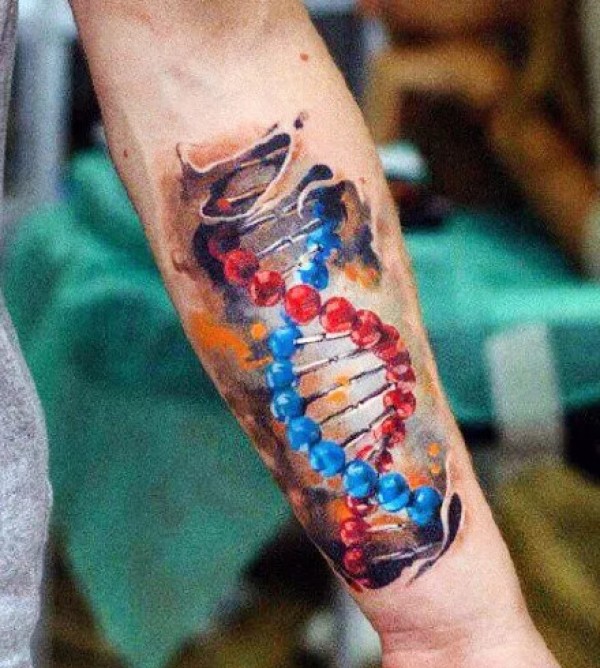 DNA双链纹身--交织在一起的DNA双链符号纹身图案