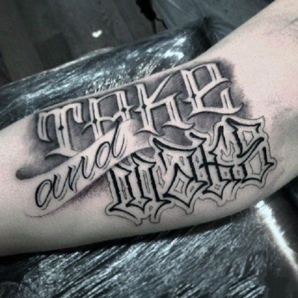 9张胳膊上很有个性的黑色英文花体字纹身图案