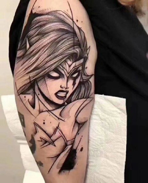 个性狂野美女霸气花臂纹身_手臂纹身图案大全_纹身图吧