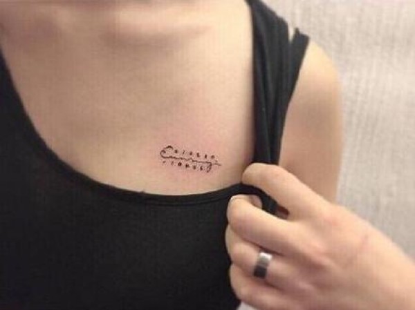 女孩子纹在肩部锁骨小清新英文等纹身图片