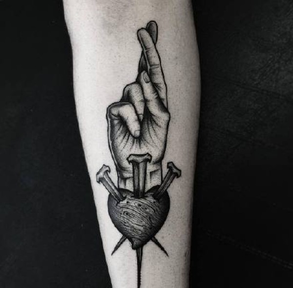 心脏纹身图案 女生手臂上黑灰纹身心脏纹身图案