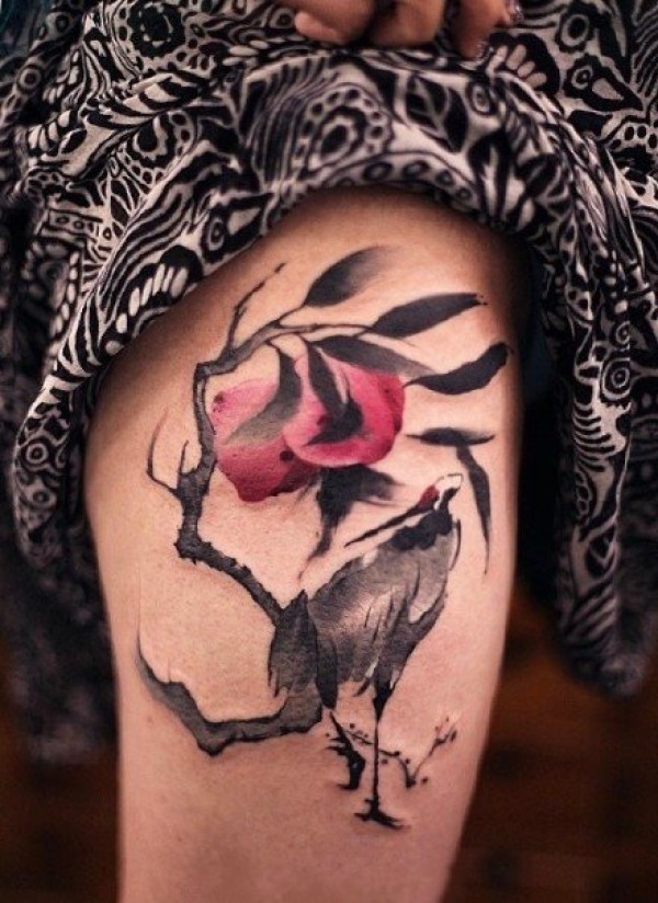 仙鹤纹身--中国风水墨元素的一组仙鹤纹身图案作品