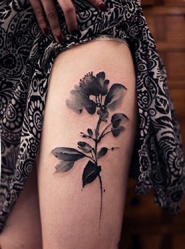 女性侧腰大腿处性感的中国风水墨纹身图案