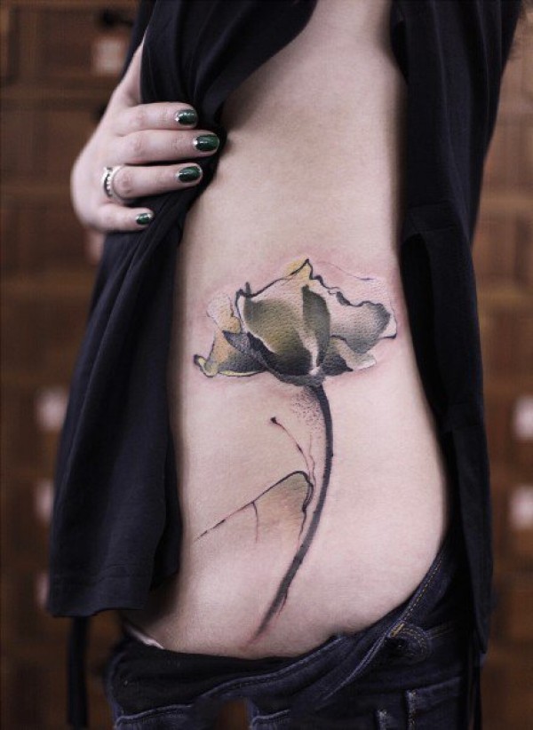 女性侧腰大腿处性感的中国风水墨纹身图案