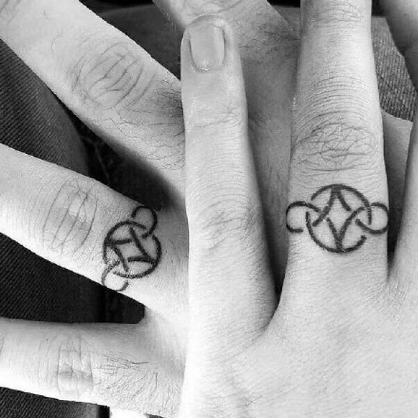 情侣恋人手指关节上的各种指环纹身图案