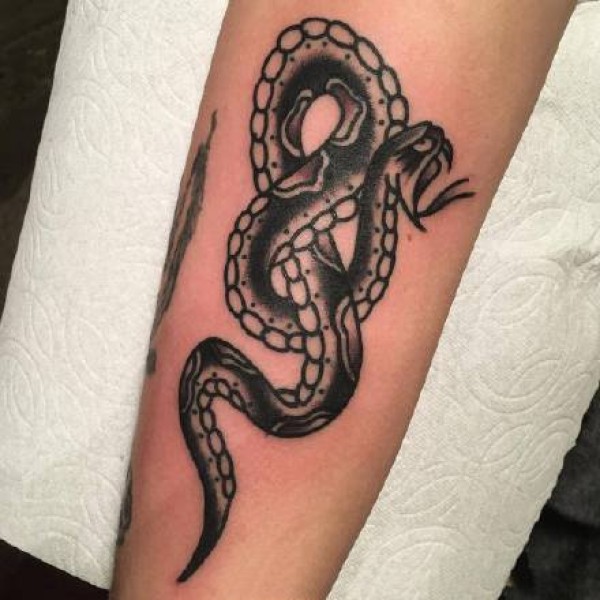 黑色和白色手臂眼镜蛇纹身动物几何点刺纹身图案