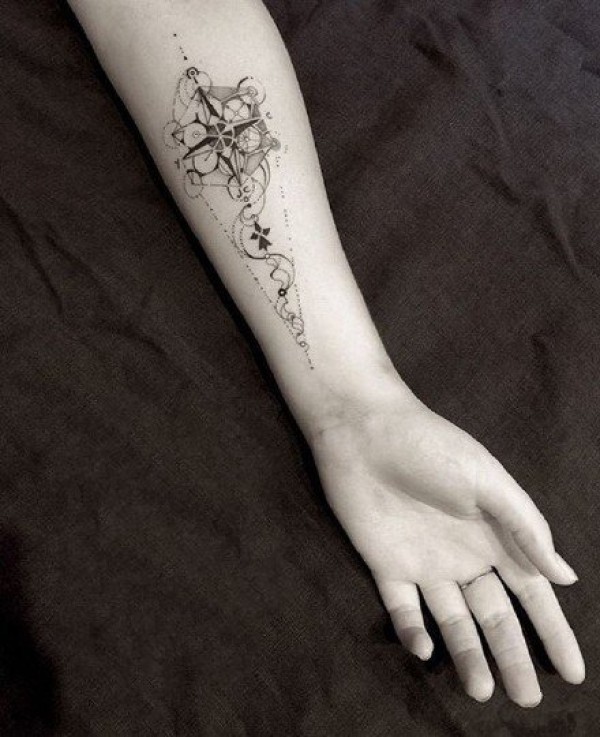 几何元素纹身 男生手臂上指南针和箭矢纹身图片