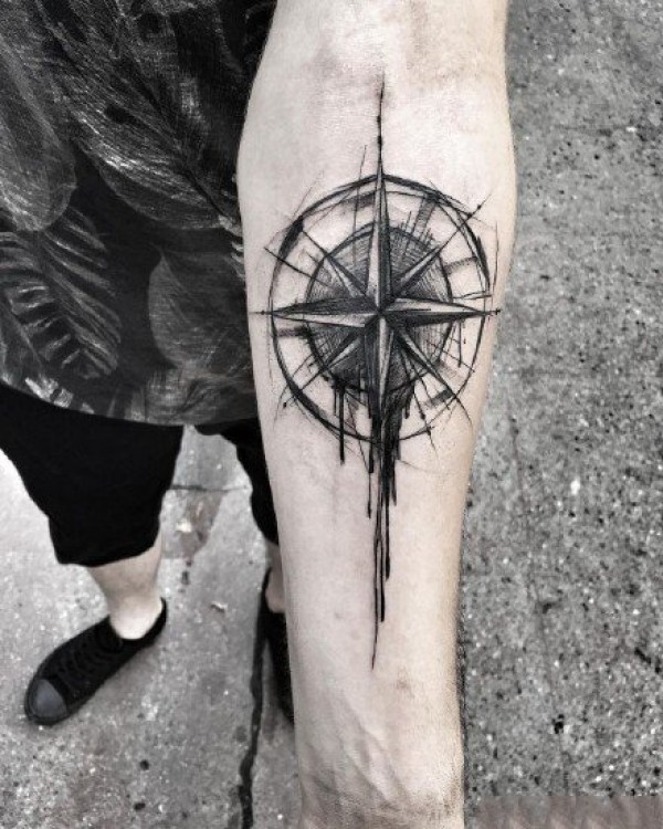 小臂和小腿上的9张漂亮指南针纹身图案