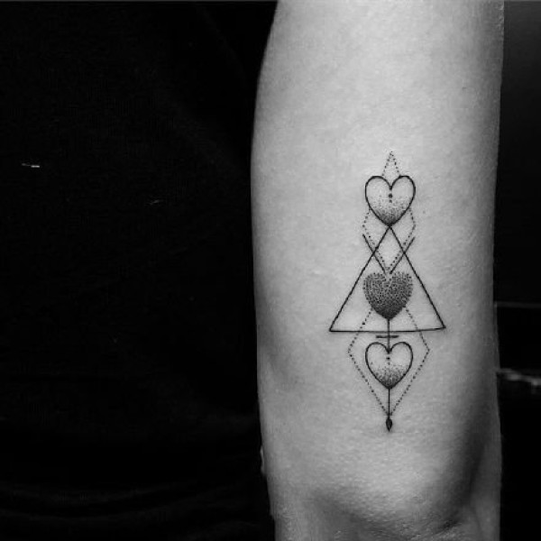 大臂后侧部的手肘拐处的一组小黑图纹身图案