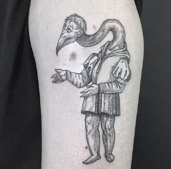 3张创意黑灰中世纪神秘怪兽纹身图案-墨西哥纹身师vanpire作品