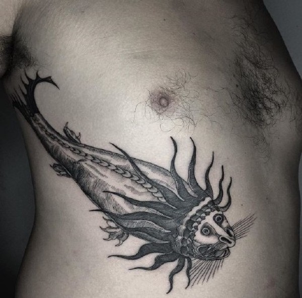 尾巴上长毒刺的小怪兽纹身