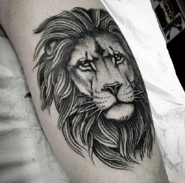 纹身狮子头手稿 简单线条纹身素描黑色纹身狮子头手稿