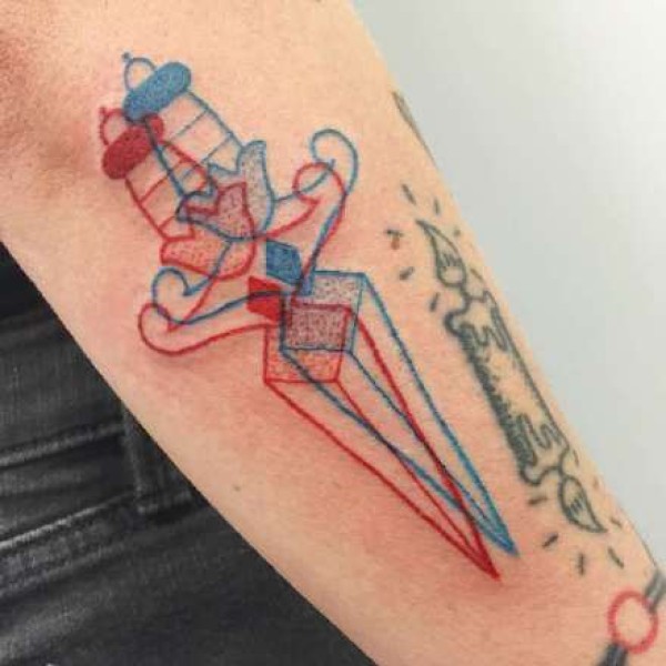 红蓝线条组成的3D视觉风格纹身图案图片