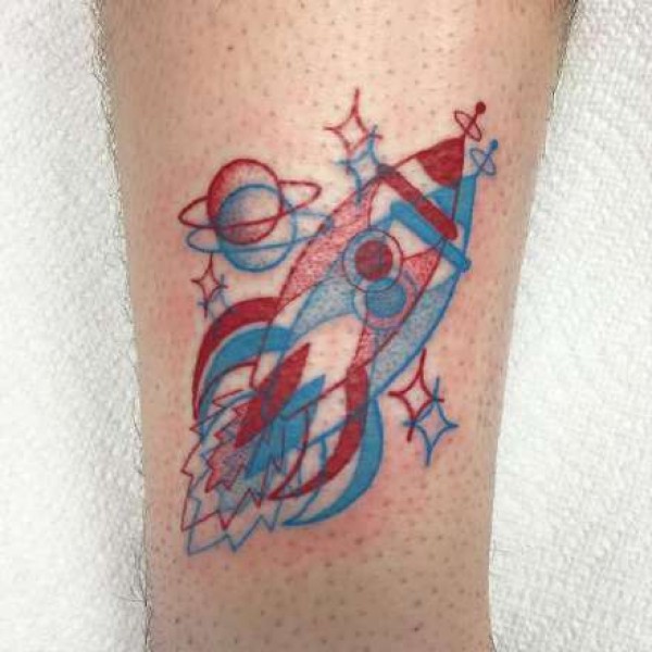 红蓝线条组成的3D视觉风格纹身图案图片
