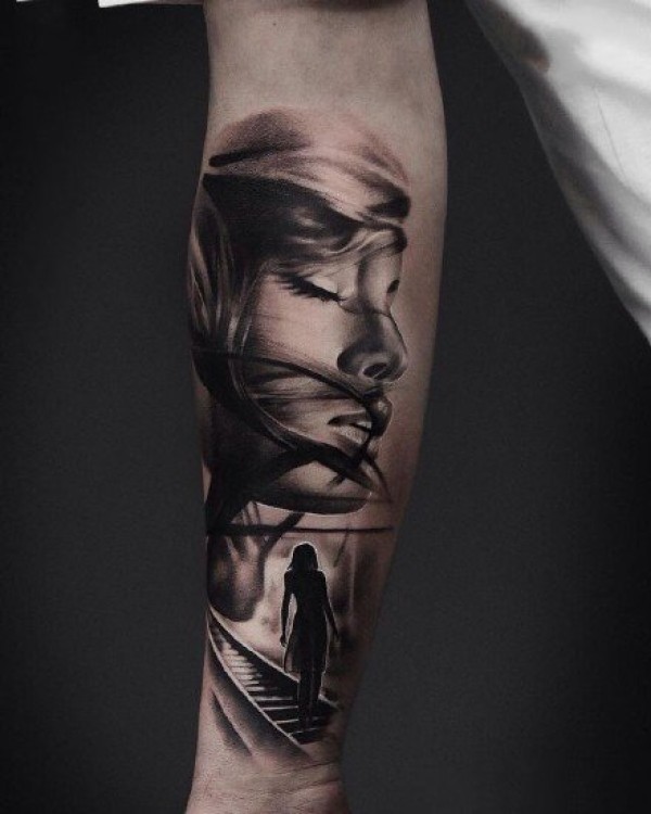 欧美写实风格的女性人物肖像纹身作品图案