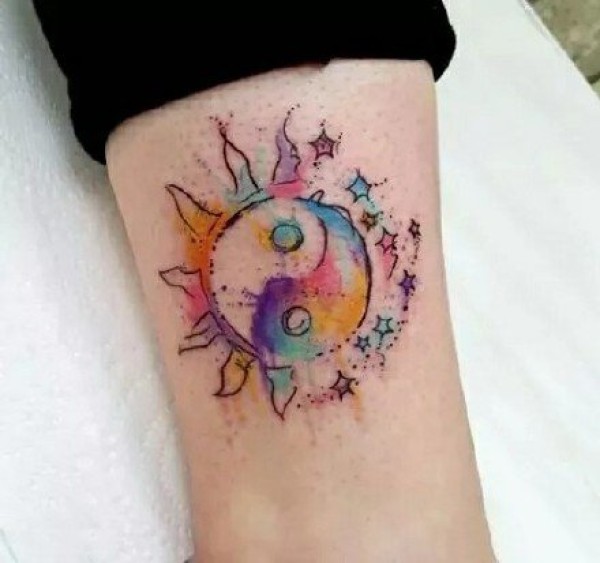 水彩色的太极八卦图纹身图案作品