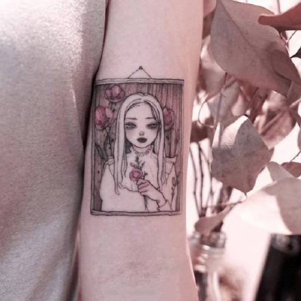 27张可爱美丽的卡通小女孩--纹身师rikkiiies的纹身图案作品