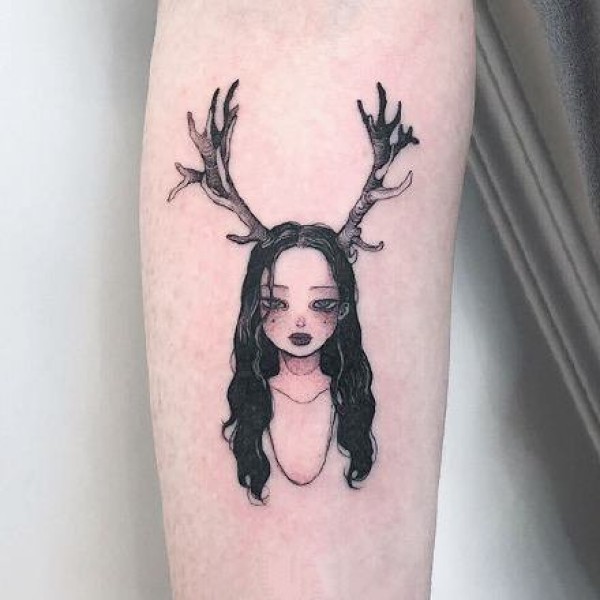 27张可爱美丽的卡通小女孩--纹身师rikkiiies的纹身图案作品