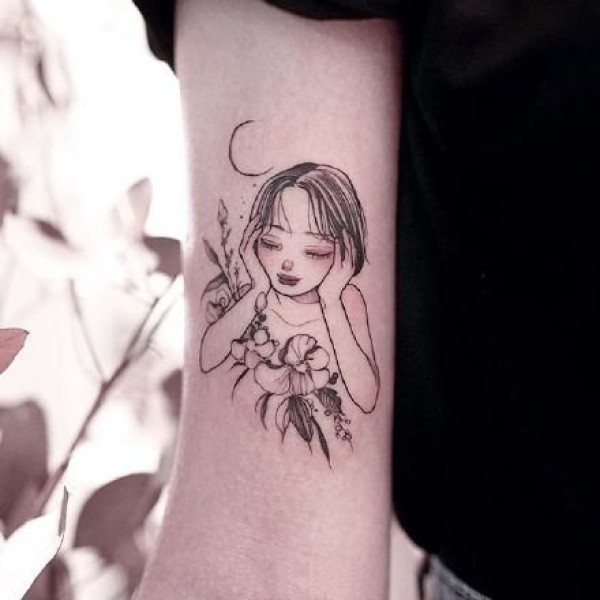 27张可爱美丽的卡通小女孩--纹身师rikkiiies的纹身图案作品