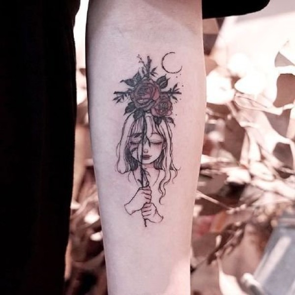 27张可爱美丽的卡通小女孩--纹身师rikkiiies的纹身图案作品