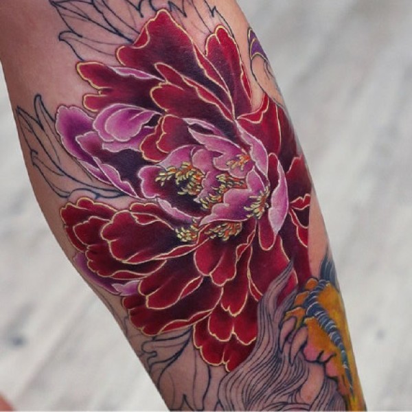 纹身小牡丹 黑色调却不失华贵的牡丹纹身图案