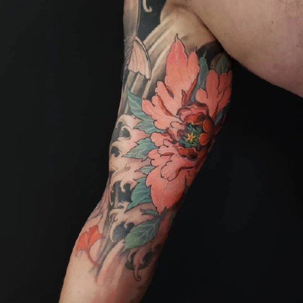 纹身小牡丹 黑色调却不失华贵的牡丹纹身图案