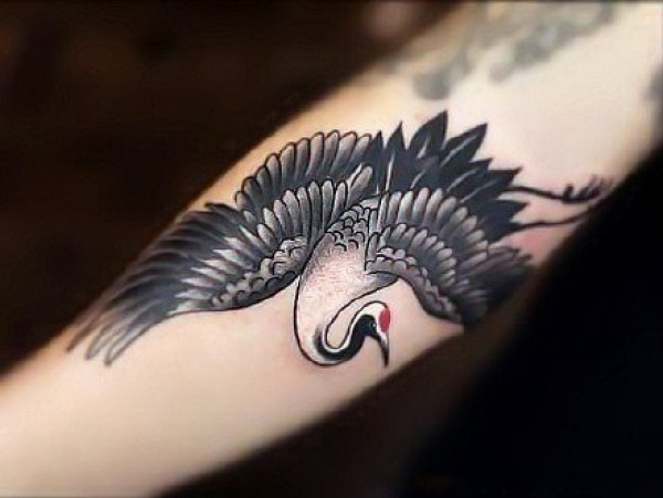 仙鹤纹身--中国风水墨元素的一组仙鹤纹身图案作品