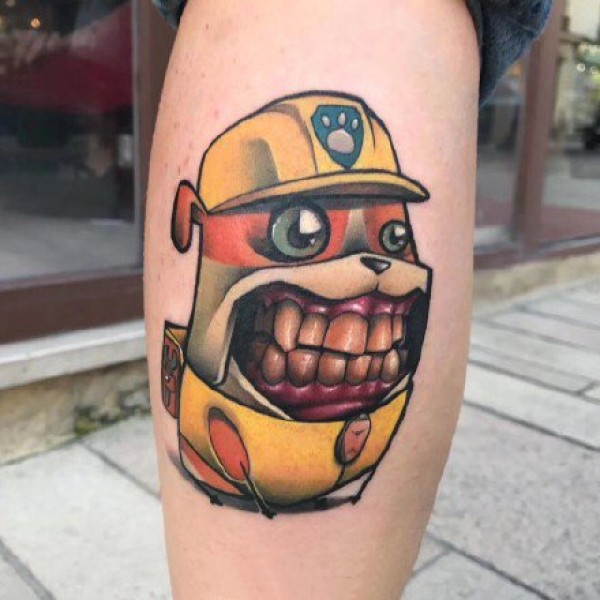 new school创意彩色大牙卡通小怪兽纹身图案欣赏