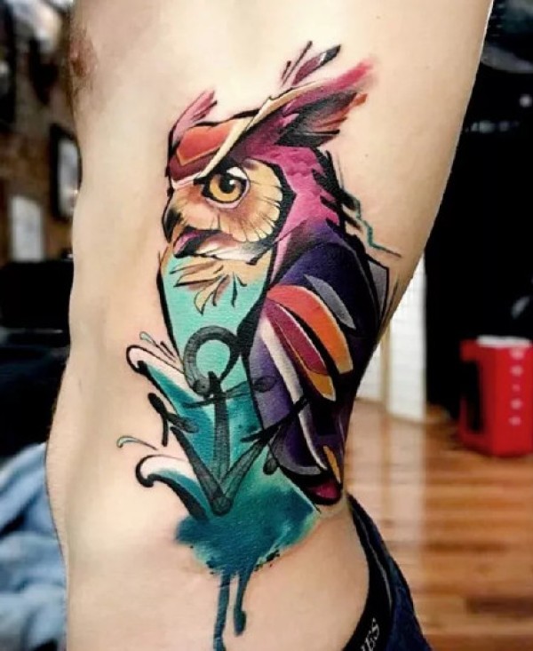 鹰纹身--一组彩色的猫头鹰等鹰纹身作品欣赏