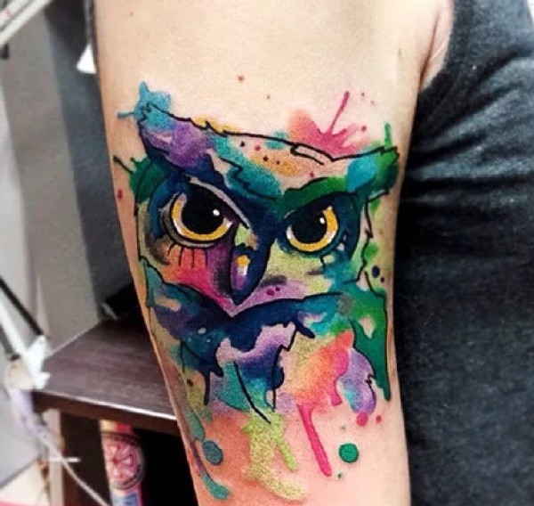 胳膊一张创意猫头鹰文身作品