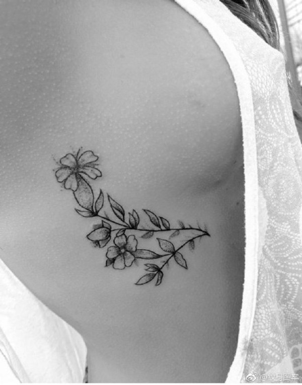 美女侧胸漂亮好看的花卉与字母纹身图图片