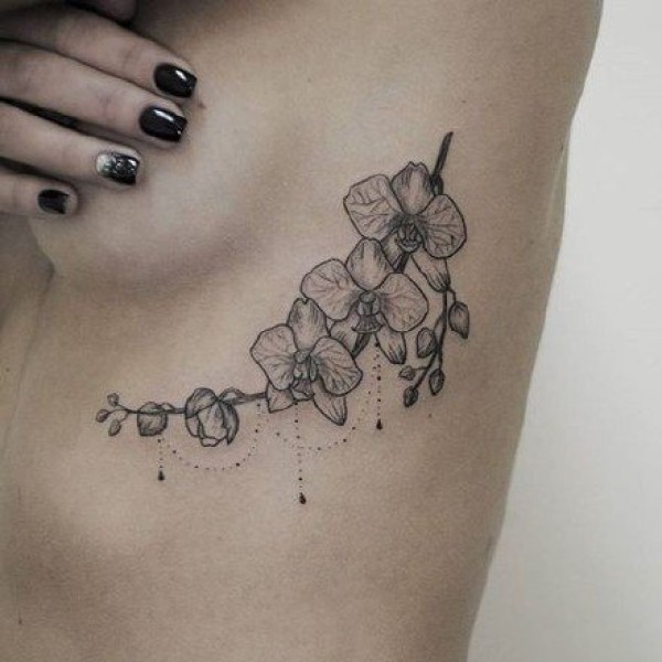 美女侧胸漂亮好看的花卉与字母纹身图图片