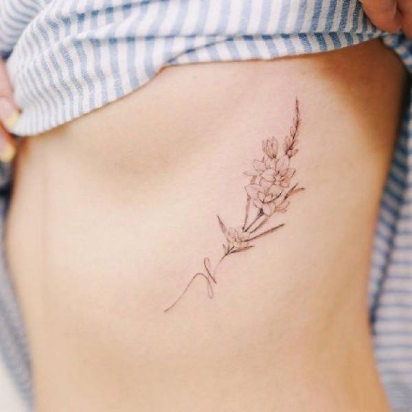 美女侧胸漂亮好看的花卉与字母纹身图图片
