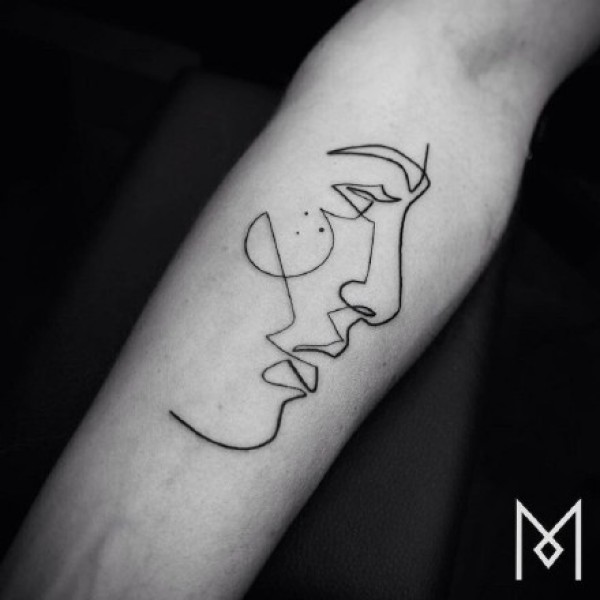 极简线条纹身 多款极简线条纹身素描欧美抽象纹身图片