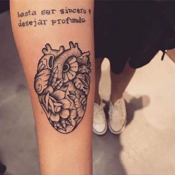 心脏纹身图案 女生手臂上黑灰纹身心脏纹身图案
