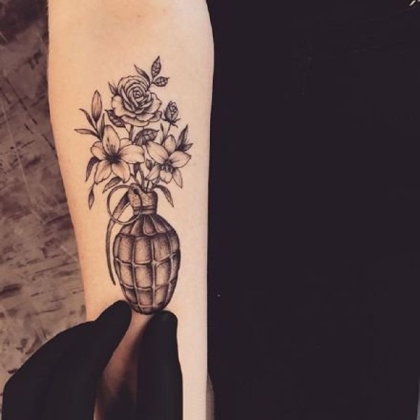 心脏纹身图案 女生手臂上黑灰纹身心脏纹身图案